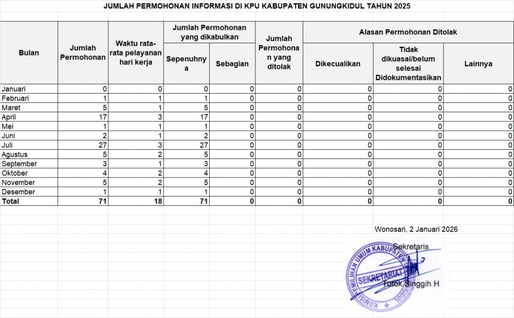 JUMLAH PERMOHONAN INFORMASI DI KPU KABUPATEN GUNUNGKIDUL TAHUN 2025